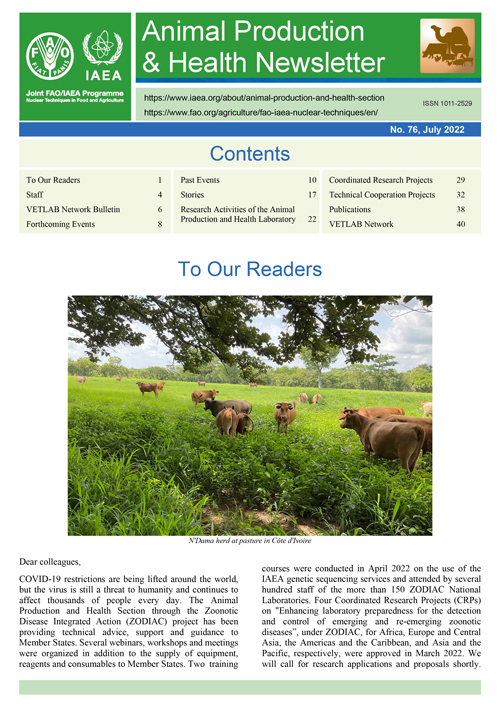 Cite this content as: INTERNATIONAL ATOMIC ENERGY AGENCY, Animal Production and Health Newsletter, No. 76, July 2022 , IAEA, Vienna (2022)