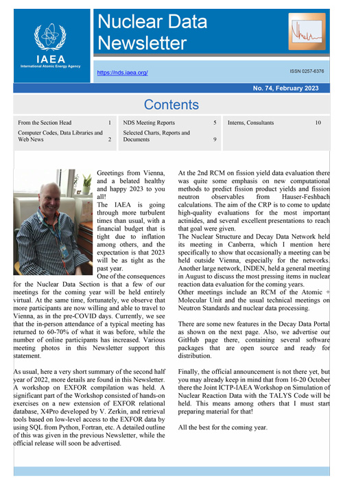 Cite this content as: INTERNATIONAL ATOMIC ENERGY AGENCY, Nuclear Data Newsletter No. 74 Issue No. 74, February 2023 , IAEA, Vienna (2023)