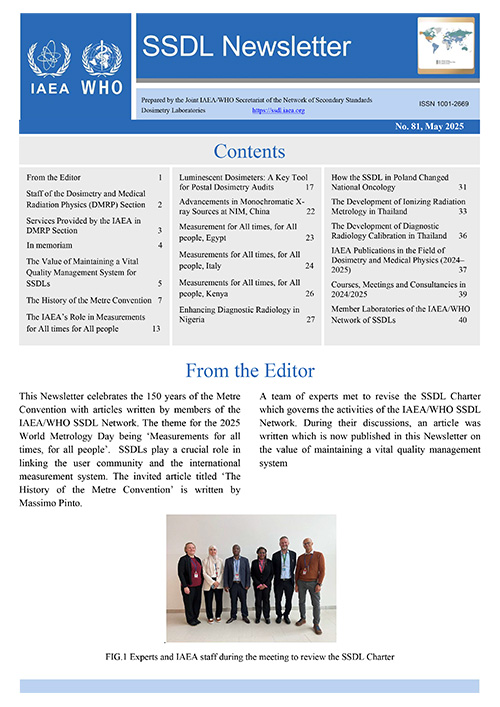 Cite this content as: INTERNATIONAL ATOMIC ENERGY AGENCY, SSDL Newsletter Issue No. 81, May 2025 , IAEA, Vienna (2025)