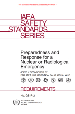 This publication, co-sponsored by FAO, OCHA, OECD/NEA, ILO, PAHO and WHO, establishes the requirements for preparedness and response for a nuclear or radiological emergency. It expands on, complements and organizes the requirements relating to emergency management established in Safety Series No. 115, International Basic Safety Standards for Protection against Ionizing Radiation and for the Safety of Radiation Sources.