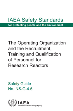 This Safety Guide provides recommendations on meeting the requirements on the operating organization and on personnel for research reactors. It covers the typical operating organization for research reactor facilities; the recruitment process and qualification in terms of education, training and experience; programmes for initial and continuing training; the authorization process for those individuals having an immediate bearing on safety; and the processes for their requalification and reauthorization.