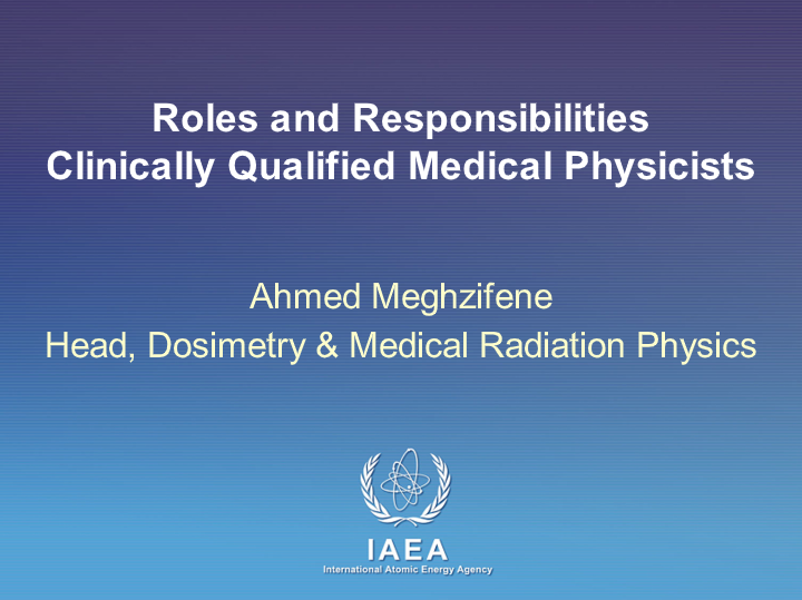 The IAEA's publication Roles and Responsibilities, and Education and Training Requirements for Clinically Qualified Medical Physicists establishes criteria that support the harmonization of education and clinical training worldwide, as well as to promote the recognition and professionalism of medical physics as a profession internationally. This publication has been endorsed by the AAPM and IOMP.