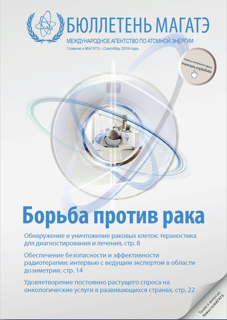 В настоящем выпуске Бюллетеня МАГАТЭ более подробно рассматриваются применение радиационного облучения в целях борьбы против рака во всем мире и роль МАГАТЭ. В нем рассказывается о раке — его природе, диагностике и лечении, и освещаются главные последние достижения, такие как брахитерапия под визуальным контролем и тераностика, в том числе производство новых видов радиофармацевтических препаратов.