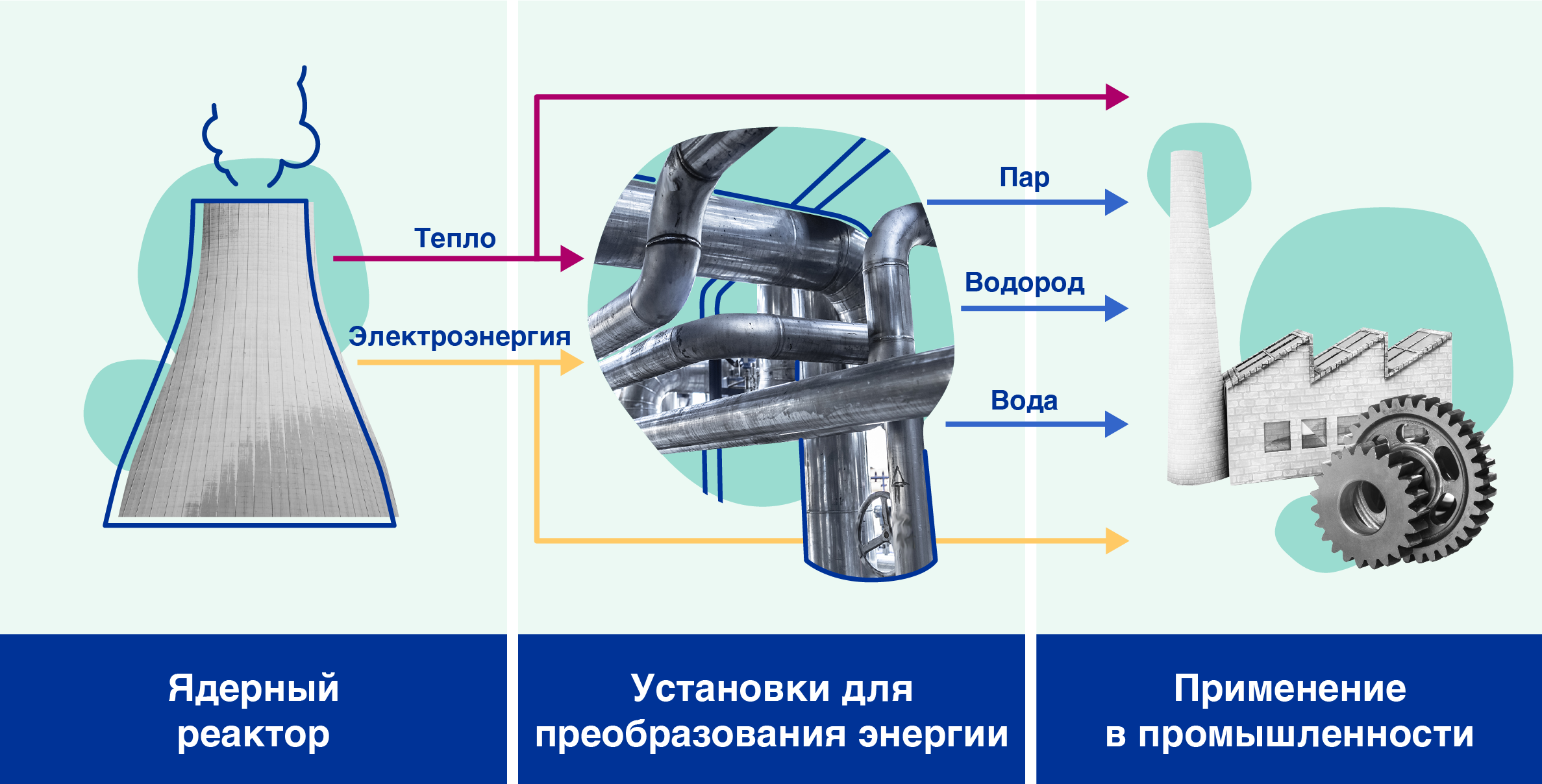 Ядерная энергетика может применяться в разных областях, помимо производства электроэнергии. К таким теплоемким процессам относится опреснение морской воды, производство водорода, централизованное теплоснабжение и технологический нагрев для нужд промышленности (производство стекла, цемента, металлов), нефтепереработка и производство синтез-газа. Сегодня, когда мировое сообщество стремится к достижению целей по борьбе с изменением климата, повышение роли ядерной энергетики в этих областях может стать ключом к успешному переходу к экологически чистой энергии.