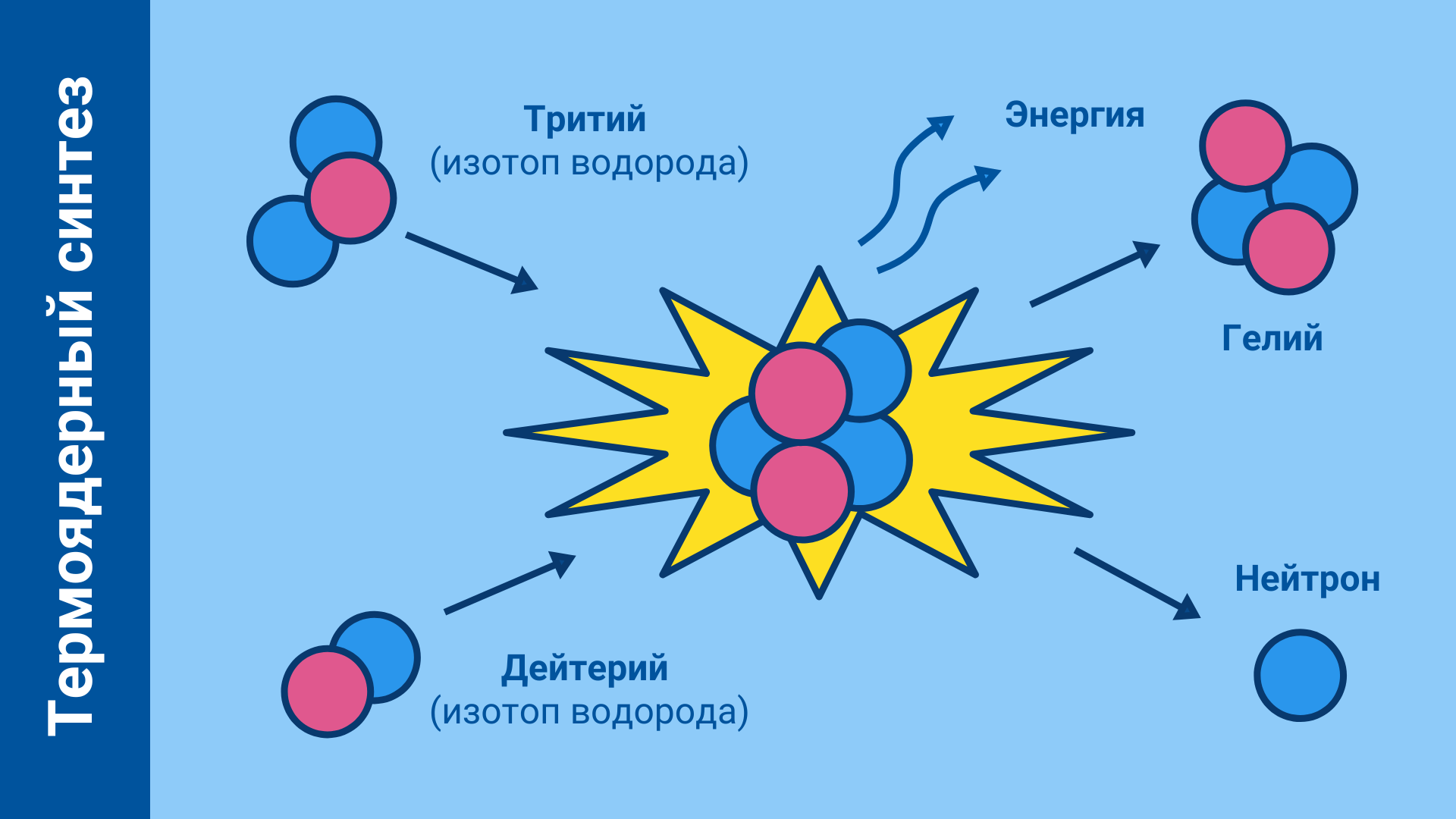 Термоядерный синтез — это процесс, в ходе которого два легких атомных ядра объединяются в одно более тяжелое ядро с высвобождением огромного количества энергии. Эта теория была впервые сформулирована в 1920-х годах.