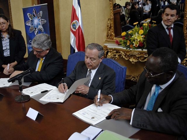 Mr Enrique Castillo, Minister of Foreign Affairs of Costa Rica, Mr Alejandro Cruz, Minister for Science and Technology, and Mr Kwaku Aning, IAEA Deputy Director General and Head of the Department of Technical Cooperation, have signed Costa Rica's Country Programme Framework (CPF) for the period of 2012 - 2016 on 11 July 2012 at the Costa Rican Ministry of Foreign Affairs in San José.