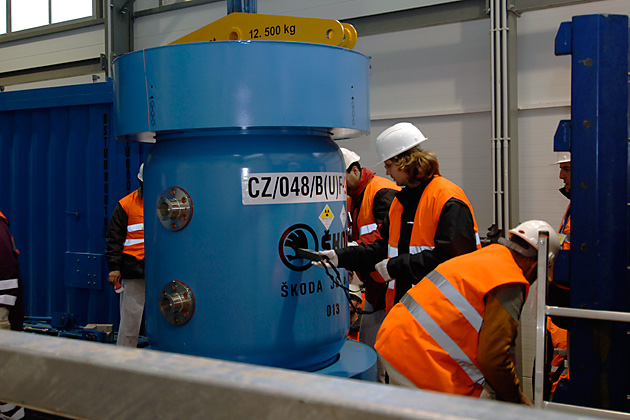 22:30 hours: Inspectors from the IAEA and the Czech State Office for Nuclear Safety jointly verify that the load in the casks is indeed the one that was so far under their control.