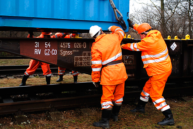 16:00 hours: Mesice train station near Prague. The shipping containers are loaded on the train.