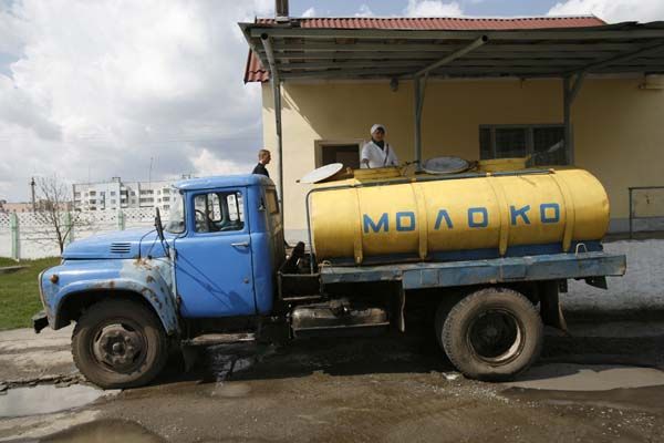 Aside from determining what milk goes into which end products, radiological testing at dairy factories serves another purpose: it helps pinpoint contaminated farmland. Modern dairy farming in Belarus still reflects the former Soviet regime. Large tractors and big barns signify the continuation of state farming practices; rickety stables and wooden ploughs identify private farms that typically comprise only a few acres.