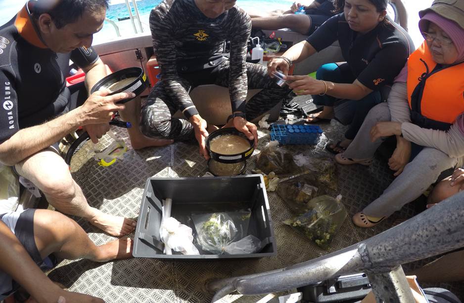 Workshop participants also took part in practical training on the deployment of window screen artificial substrate for collection of benthic HAB species.