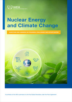 Nuclear Energy, Climate Change, Questions, Answers, Challenges and Opportunities, Contribution of Nuclear Energy, Mitigation, Adaptation, Finance, Technology Development, Economic Aspects, Cross-Cutting Issues, IAEA Leading Role, Member States, Global Stocktake, Paris Agreement, Low Carbon Electricity, Carbon Dioxide, Countries, Good Practices, Lessons Learned, Success Stories, Climate Change Adaption Challenges, Capacity Building, Decarbonization Strategies, Social Aspects, Loss and Damage, Linkages, Sustainable Development