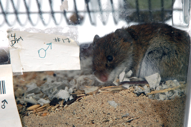 This male mouse will be released, as well as the other mice, with a tag around his neck to trace his life history if caught again. In this way, researchers can observe the effect of high doses of radiation in mammals.