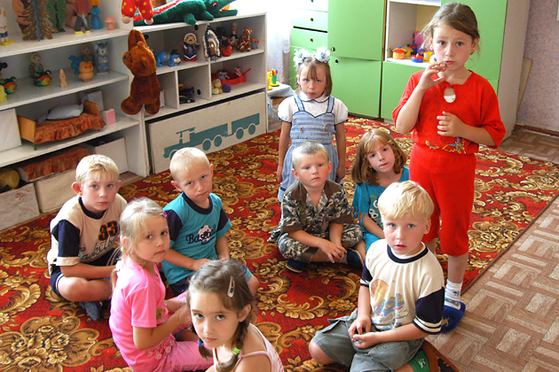 Little lives thrive in the town of Narodichi, which is some 80 kilometers from the Chernobyl plant. At the time of the Chernobyl accident, Narodichi stood in the path of the prevailing winds blowing to the west and was contaminated. Today, more than 100 children are enrolled in this Narodichi kindergarten.