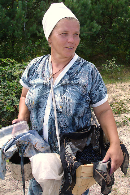 Blueberries grow in the peaty soils around Jelno and collecting blueberries is one of the few occupations that still provide some cash. Here a local woman explains that her blueberries will be sold to a middleman at about two dollars per kilo and will be sold again at higher prices in Eastern and Western Europe for pharmaceutical purposes.
