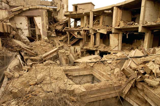 What remains of the Tammuz-Osiraq reactor facility. When the nuclear facilities were bombed it not only created radiological hazards but also industrial risks for potential clean-up crews.
