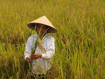 Photo 13 of 15 : New varieties of rice are developed and grown on test plots near the Agricultural Genetics Institute in Hanoi. Scientists at AGI have developed more than 30 new varieties of rice, mushrooms, and other crops that are benefitting the country's food and agricultural economies. Vietnam ranks among the world's top producers and exporters of rice.