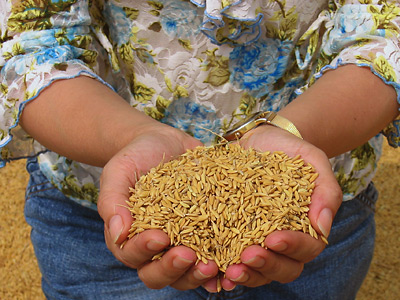 Photo 11 of 15 :The hands of Dr. Nguyen Thi Vinh hold rice grown in Bac Ninh Province near Hanoi. She and her colleagues at the Institute of Agricultural Genetics have developed many new varieties of rice that today help feed Vietnam’s families and add to the country’s export earnings. The IAEA is among agencies that are supporting their efforts.