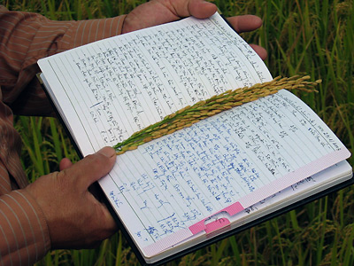 Photo 15 of 15 : A rice breeder's log book records each detail of a new seed's life. From the laboratory to the field, new varieties of rice take years of research, development, and testing before they are cleared for commercial cultivation. In north Vietnam, work in plant breeding and crop improvement is spearheaded by the Agricultural Genetics Institute in Hanoi.
