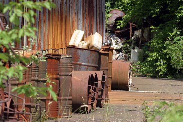 The rickety sheds store a mish-mash of low- and medium level radioactive waste. The potential for contamination threatens the local environment at the Institute.